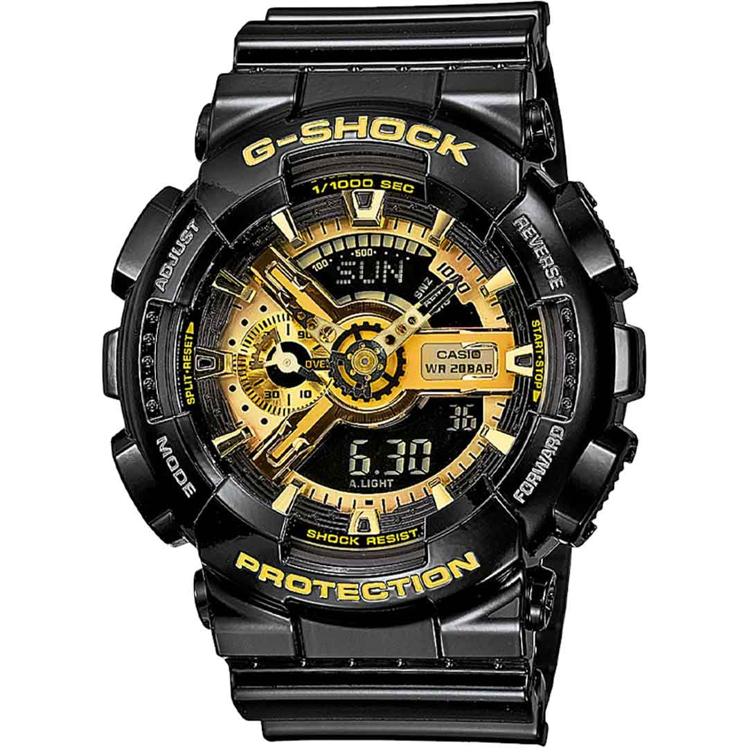 Digitalno-analogni sat G-Shock GA-110GB-1AER. Glavni materijal od koga je sačinjen je gumana smola. Posjeduje mnogo funkcija, a neke od njih su: Magnetski otporan, Otporan na udarce, Mineralno staklo, Otpornost na vodu od 200 metara. Sat dolazi u originalnom fabričkom pakovanju sa kutijom, certifikatima i međunarodnom garancijom, a ovaj model je dio serije GA-110GB.