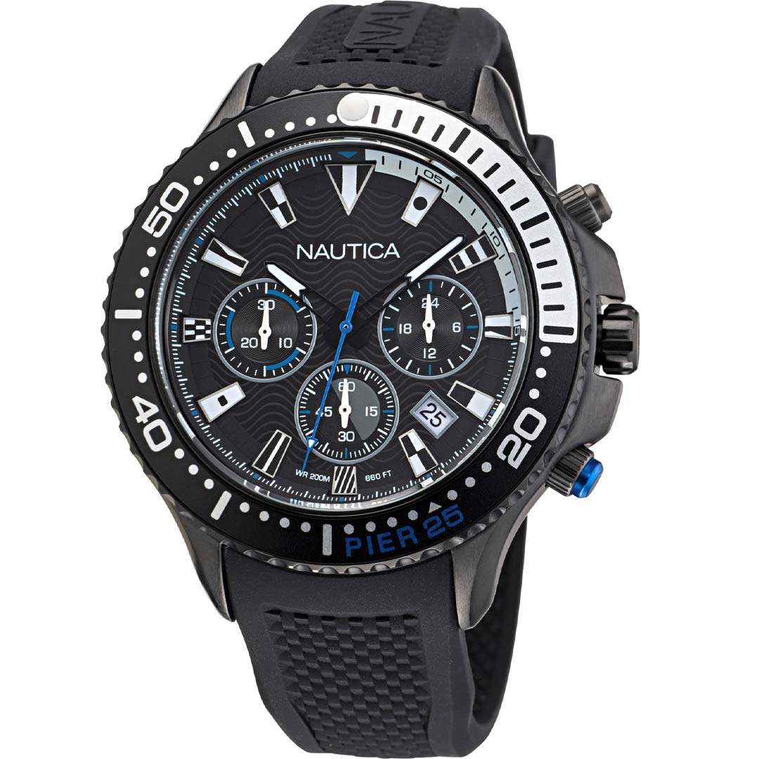 Ovaj Nautica model sadrži krunicu sa šrafom, a njegova vodootpornost je do 10ATM. Sat dolazi u originalnom fabričkom pakovanju sa kutijom, certifikatima i međunarodnom garancijom, a ovaj model je dio kolekcije PIER 25.